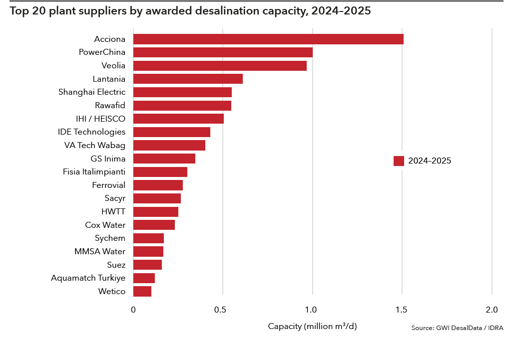 • El Grupo ocupa el cuarto lugar en el ranking de proveedores de plantas desaladoras elaborado por Global Water Intelligence (GW)) y la Asociación Internacional de Desalación y Reutilización de Agua (IDRA)